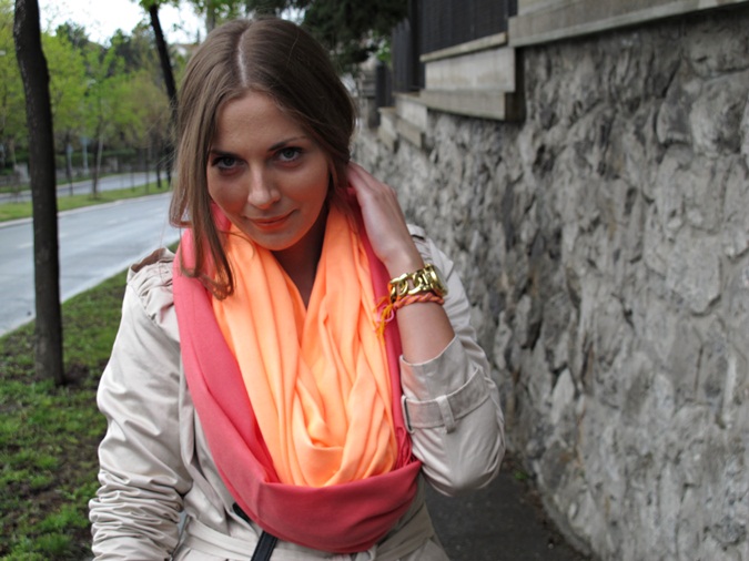 Moram da vam se pohvalim novom maramom, u pitanju je neon narandžasta, tako da mi sada ostaje još samo zelena, kako bih upotpunila fluo kolekciju! :) A Turci bi mogli da se pozabave novim bojama! ;)